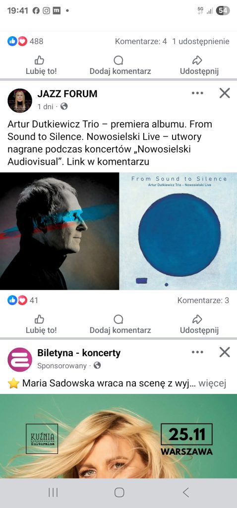29 listopada na FB red. Marka Duszy pojawiła się recenzja z koncertu premierowego Artur Dutkiewicz Trio, który odbył się 27 listopada w Podziemiach Kamedulskich.