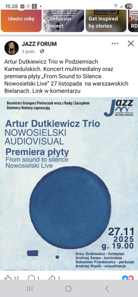 24 listopada 2025 na FB Jazz Forum pojawiła się zapowiedź koncertu premierowego Artur Dutkiewicz Trio w Podziemiach Kamedulskich.